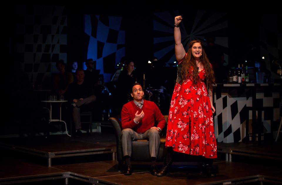 Marta ← Previous Russ Farmer as Bobby and Emily Smith as Marta. Photo credit Nanc Price. Bemused man shrugs on couch as woman stands with fist in air.